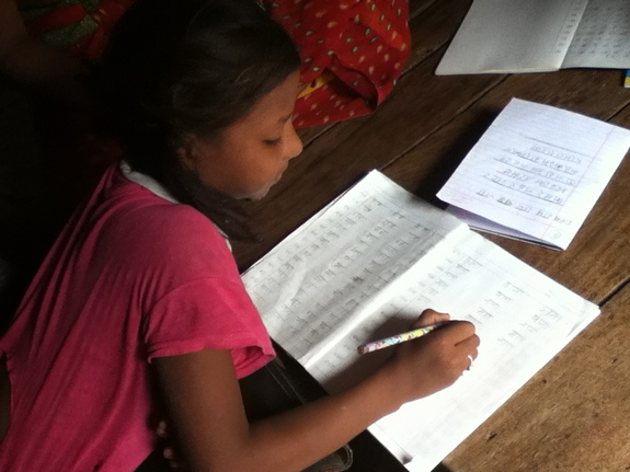 子どもの足で30分以上かかる家の子どもたちは、家庭訪問にて宿題のチェック。